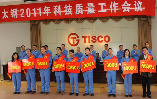 2月28日上午,太鋼召開了一年一度的科技質(zhì)量工作會(huì)議。大會(huì)對(duì)2010年科技質(zhì)量工作進(jìn)行了客觀的總結(jié),對(duì)2011年科技質(zhì)量重點(diǎn)工作進(jìn)行了安排部署,同時(shí)對(duì)2010年重點(diǎn)產(chǎn)品SBU、爐料結(jié)構(gòu)優(yōu)化SBU、質(zhì)量先進(jìn)單位、質(zhì)量——成本最佳操作者和管理者、工藝優(yōu)化質(zhì)量改進(jìn)項(xiàng)目、優(yōu)秀六西格瑪改進(jìn)項(xiàng)目、省部級(jí)以上科技成果、專利和優(yōu)秀科技人員進(jìn)行了隆重表彰。