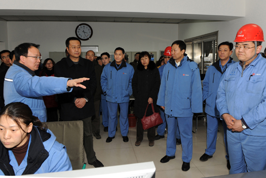 圖為來賓們在450平方米燒結(jié)機(jī)煙氣脫硫脫硝控制室參觀。 王旭宏 攝
