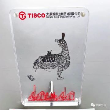 鳥(niǎo)尊是西周中期偏早的青銅酒器,西周晉侯鳥(niǎo)尊整體造型為佇立回首的鳳鳥(niǎo)形,鳳尾下彎成一象首,與雙腿形成三點(diǎn)支撐,是晉侯宗廟祭祀的禮器,現(xiàn)收藏于山西省博物院,是山西博物院的院徽原型和“鎮(zhèn)館之寶”,被譽(yù)為晉國(guó)之瑞。太鋼以“三晉國(guó)寶——鳥(niǎo)尊”為原型,采用2018年7月成功軋制的第一卷手撕鋼為原料制成的“手撕鋼鳥(niǎo)尊”,讓山西悠久的歷史文化與中國(guó)不銹鋼工業(yè)發(fā)展成就結(jié)合起來(lái),展現(xiàn)了太鋼集團(tuán)“用不銹智慧創(chuàng)造卓越品質(zhì)”的企業(yè)精神。