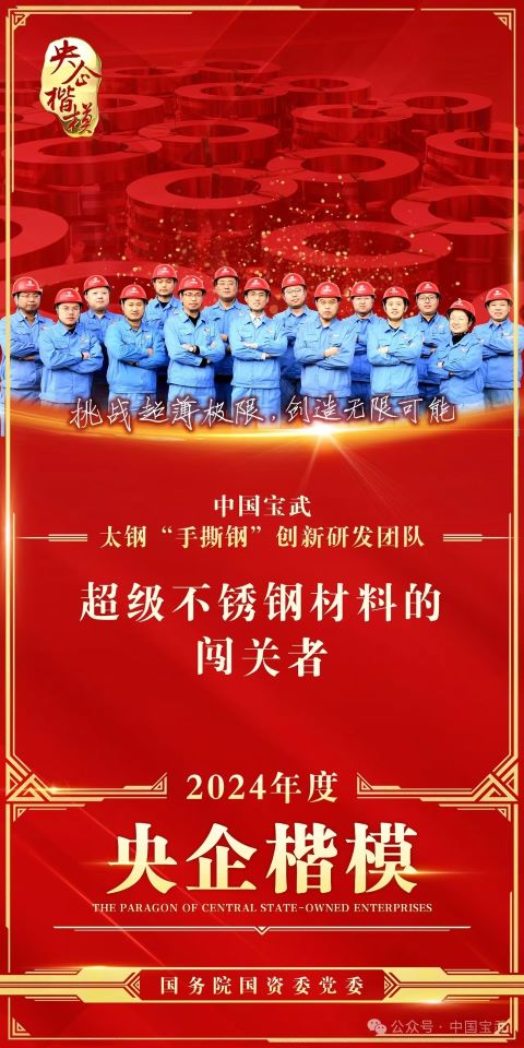 在1月15日下午隆重舉行的2024年度“央企楷模”發(fā)布活動(dòng)上,中國(guó)寶武太鋼“手撕鋼”創(chuàng)新研發(fā)團(tuán)隊(duì)榮獲“央企楷模”稱號(hào)。