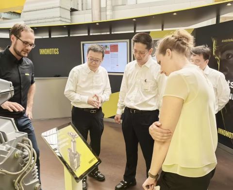 6月26日,訪問團到達德國茵夢達,先后走訪其電機廠與變頻器工廠,與智能制造、能源管理等領域負責人展開深度交流。茵夢達作為全球首家發(fā)布IE5超高效電機的企業(yè),其永磁體技術將能效提升至行業(yè)領先水平。吳小弟在座談中表示:“能效提升是工業(yè)創(chuàng)新的核心引擎,茵夢達‘效率驅(qū)動創(chuàng)新’的理念與太鋼‘材料賦能產(chǎn)業(yè)’的定位高度契合。”太鋼在高端硅鋼、特種合金領域的研發(fā)實力,可為高效電機、節(jié)能設備提供關鍵材料支撐,雙方計劃在電機用低損耗硅鋼、變頻器散熱材料等領域建立聯(lián)合研發(fā)機制,推動“材料創(chuàng)新—設備升級—能效提升”的產(chǎn)業(yè)鏈協(xié)同。