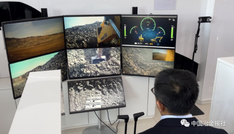 只見端坐在顯示屏前的操作員,手握儀器把手,手起手落之間,畫面中挖掘機(jī)的鐵鏟已挖起數(shù)噸礦石。