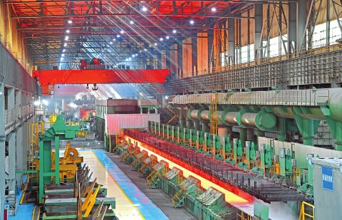 12月20日,中國寶武太鋼集團(tuán)熱連軋2250毫米生產(chǎn)線在軋制超厚規(guī)格熱軋卷板。日前,太鋼首次軋制成功31毫米超厚規(guī)格高強(qiáng)建筑用熱軋卷板,達(dá)到行業(yè)同規(guī)格軋制厚度先進(jìn)水平。(王旭宏攝)